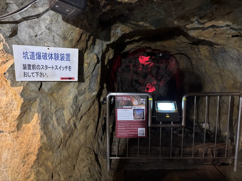 その後、明治政府官営鉱山となりフランス人技師ジャン=フランソワ・コワニェが着任。これまで手作業で進められていた作業が、凄まじい勢いで近代化されました。見学ルート後半では機械を使って掘削をしたり、火薬で坑道内を爆破して鉱石を採取したりする様子が再現されています。