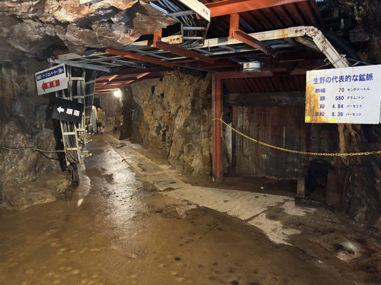 坑道内は薄暗い場所や濡れている場所があるので注意が必要です。