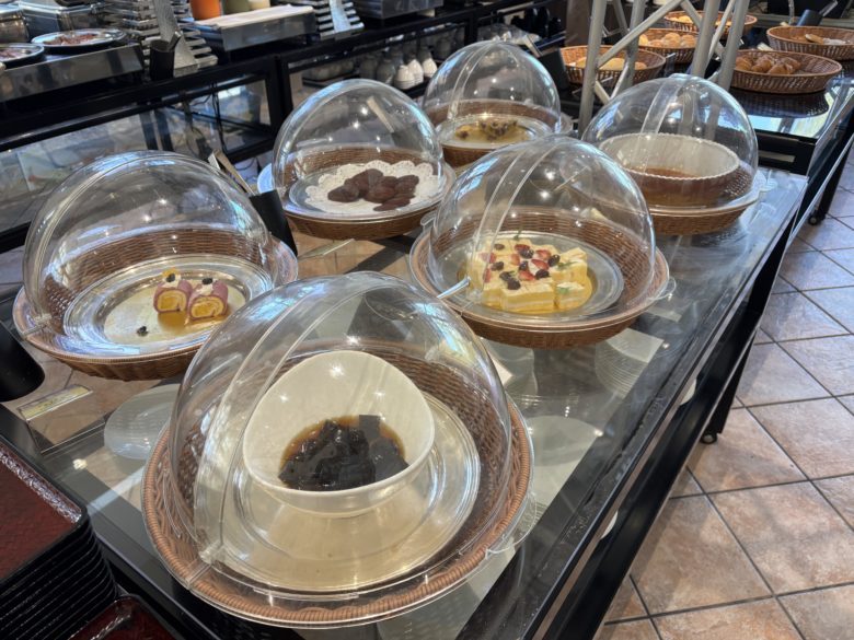 朝食バイキングではケーキも食べ放題。「もう昼ごはんいらない」って暗い爆食しました。結局昼ごはんも食べたけど。