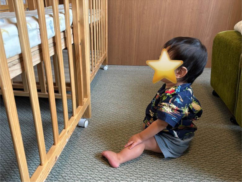 ホテルの部屋といえば土足が一般的ですが、まだ歩けない0歳児がいると「どこで遊ばせよう…」と悩みますよね。